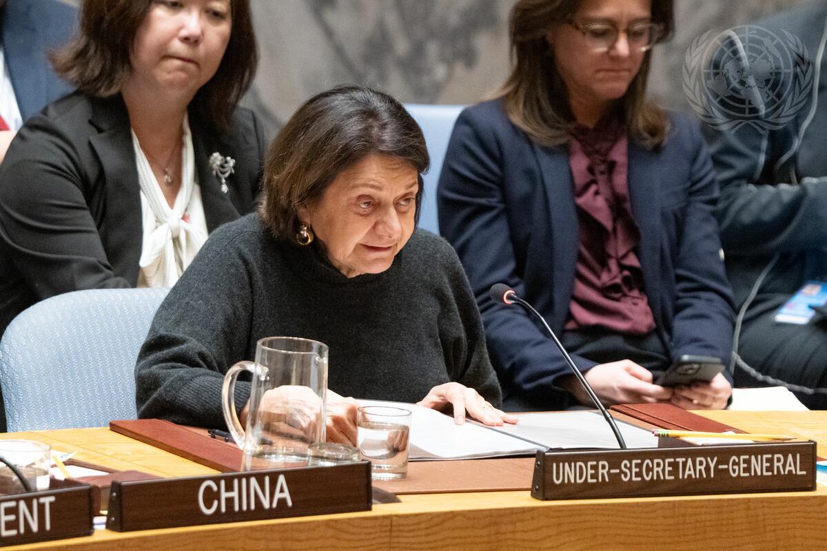 Rosemary DiCarlo, Under-Secretary-General for Political and Peacebuilding Affairs, briefs the Security Council meeting on maintenance of peace and security of Ukraine.