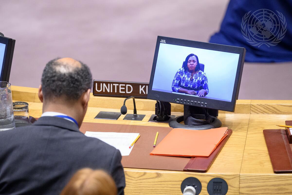 Portia Deya Abazene, President of the Federation of Women Entrepreneurs of the Central African Republic (FAFECA), briefs the Security Council meeting on the situation in the Central African Republic.
