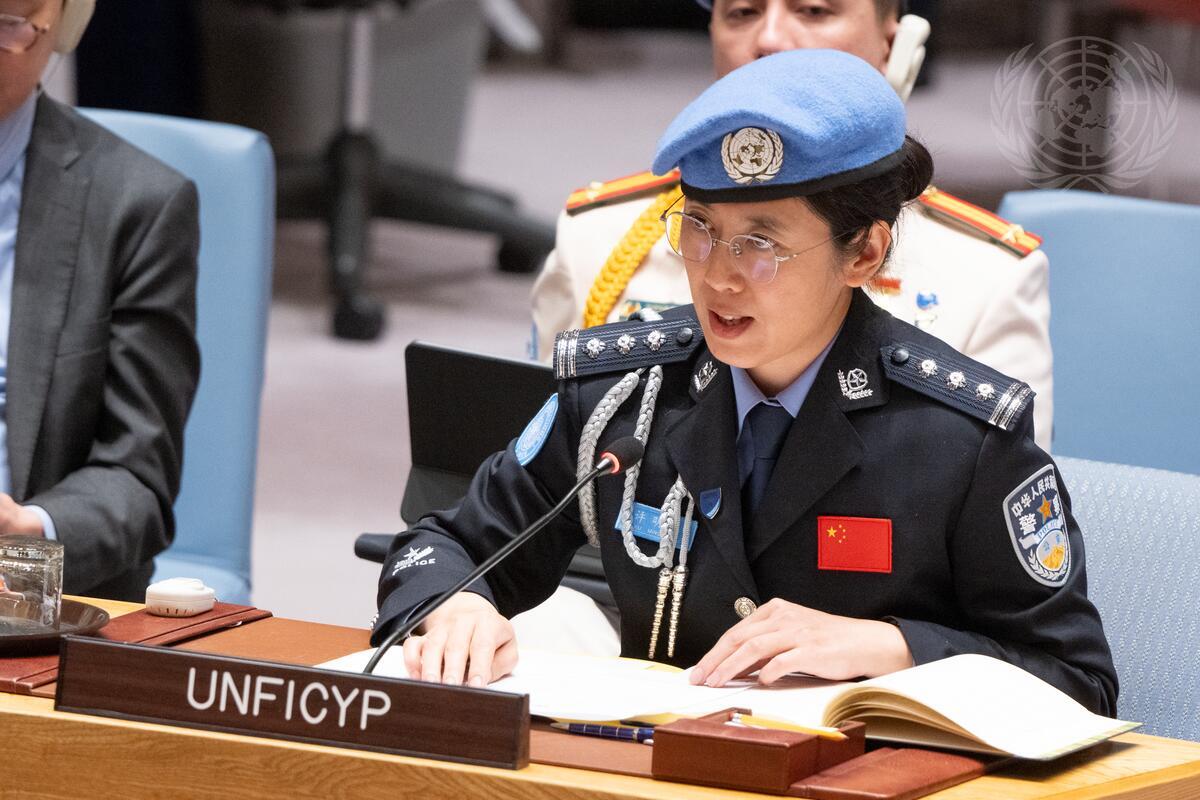 Mingzhu Xu, Senior Police Adviser, United Nations Peacekeeping Force in Cyprus (UNFICYP), briefs the Security Council meeting on United Nations peacekeeping operations.