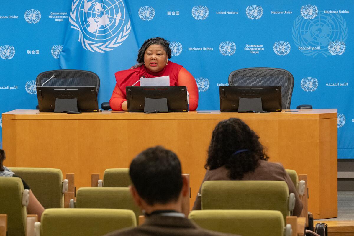 Tlaleng Mofokeng, UN Special Rapporteur on the right to health, briefs reporters following the presentation of her report to the General Assembly’s Third Committee.