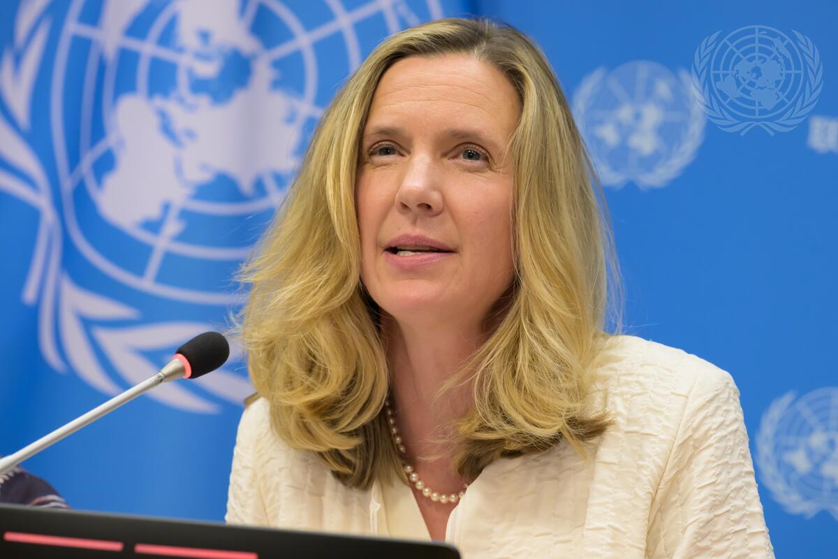 Sarah Hendriks, Director of Programme, Policy and Intergovernmental Division of UN Women, briefs reporters on Secretary-General’s report on women, peace, and security, and the 25th anniversary of Security Council Resolution 1325. With her was Nyaradzayi Gumbonzvanda, Deputy Executive Director for Normative Support of the UN System Coordination and Programme Results of UN Women.