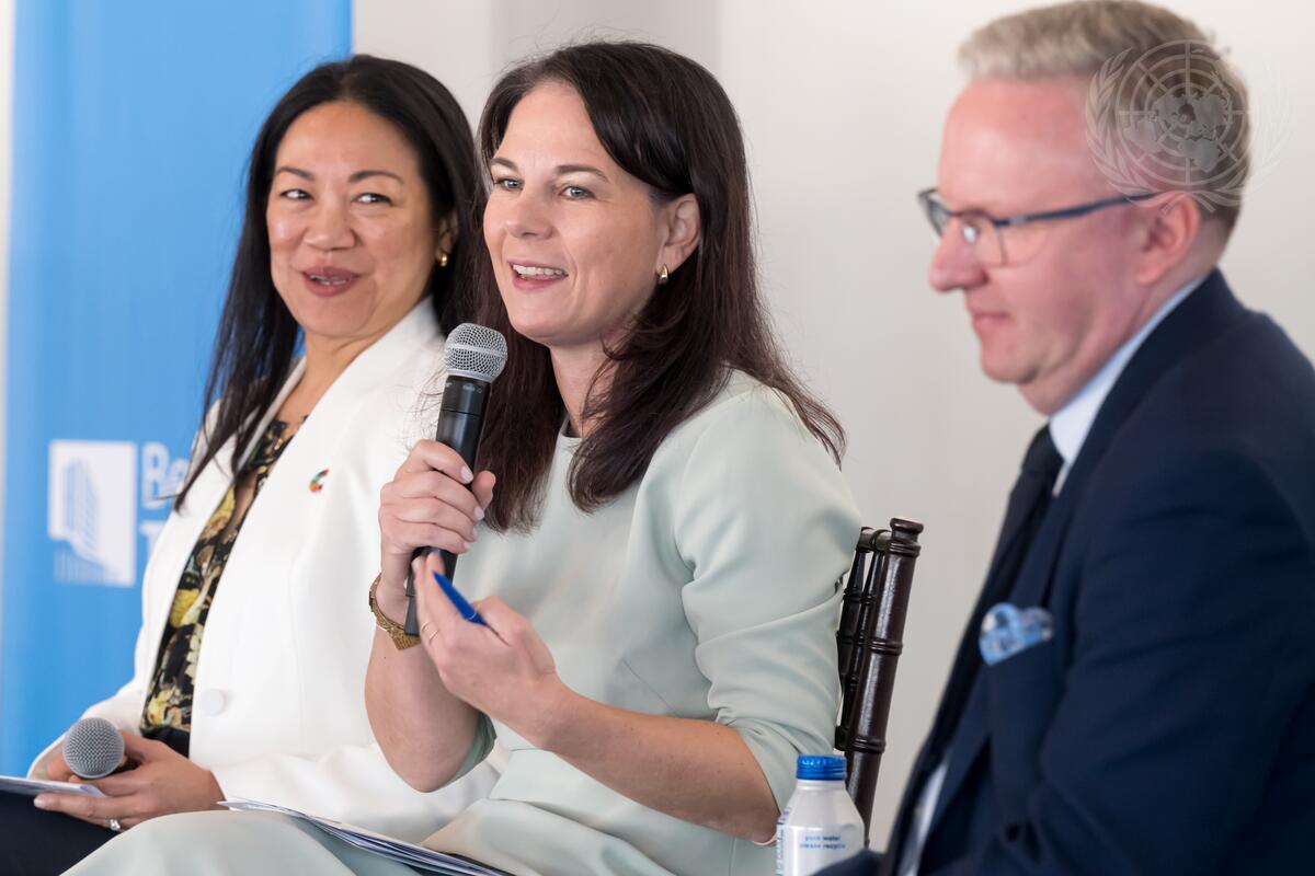Annalena Baerbock (centre), President of the eightieth session of the United Nations General Assembly, speaks at a special Better Together Dialogue on the theme “The role of the General Assembly in Fragmented Times” with Member States on the occasion of United Nations Day.