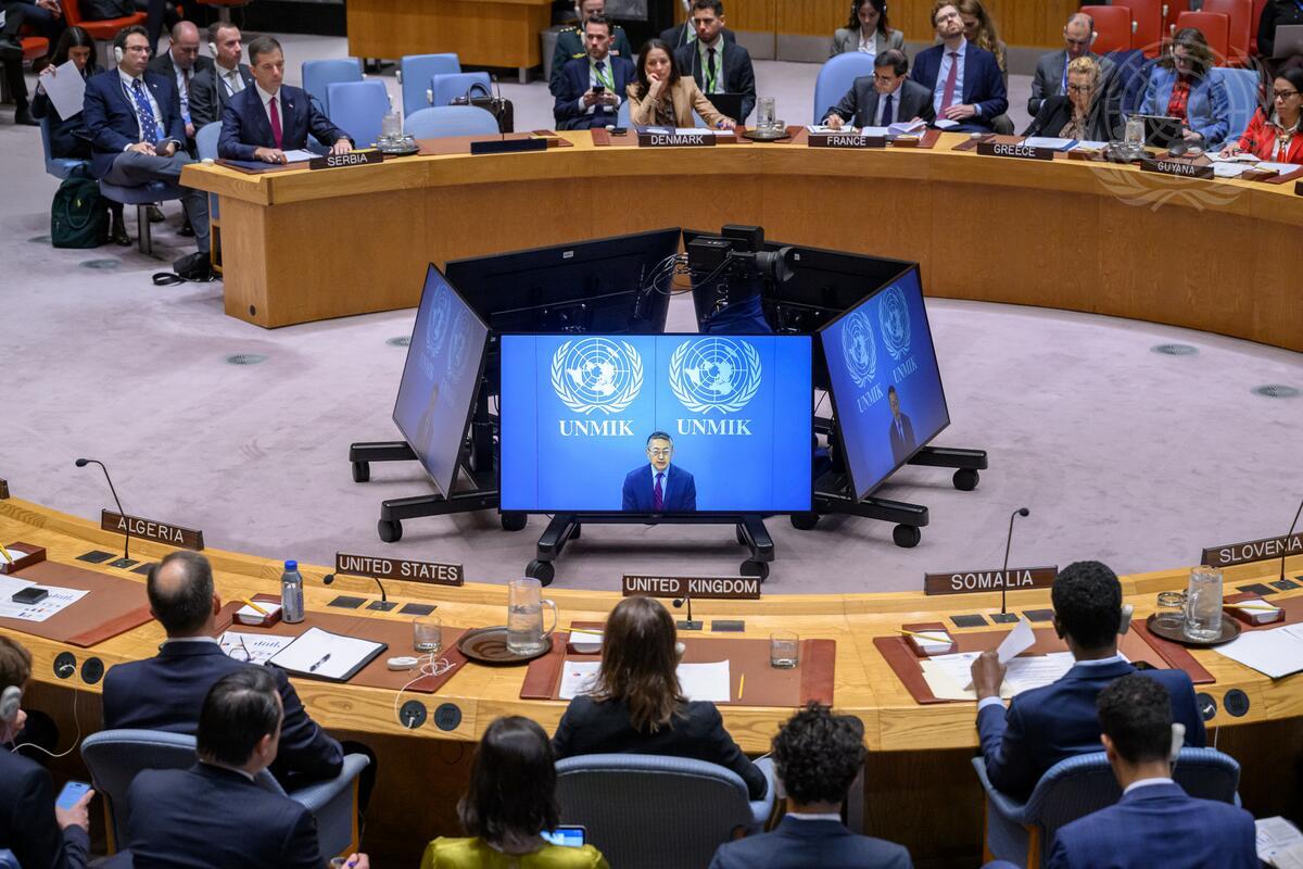 A view of the Security Council meeting on developments in Kosovo and the United Nations Interim Administration Mission in Kosovo (UNMIK). On the screen is Milbert Dongjoon Shin, Deputy Special Representative of the Secretary-General for Kosovo.
