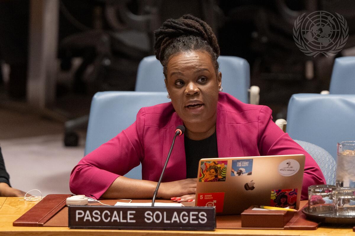Pascale Solages, Co-Founder and General Coordinator of Nègès Mawon, briefs the Security Council meeting on the question concerning Haiti.