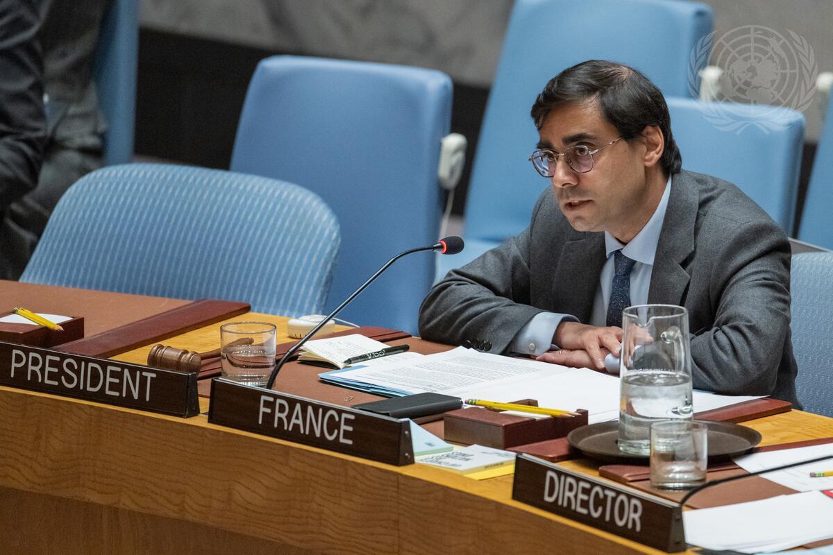 Jay Dharmadhikari, Deputy Permanent Representative of the Republic of France to the United Nations and President of the Security Council for the month of April, chairs the Security Council meeting that heard a briefing by Filippo Grandi, United Nations High Commissioner for Refugees.