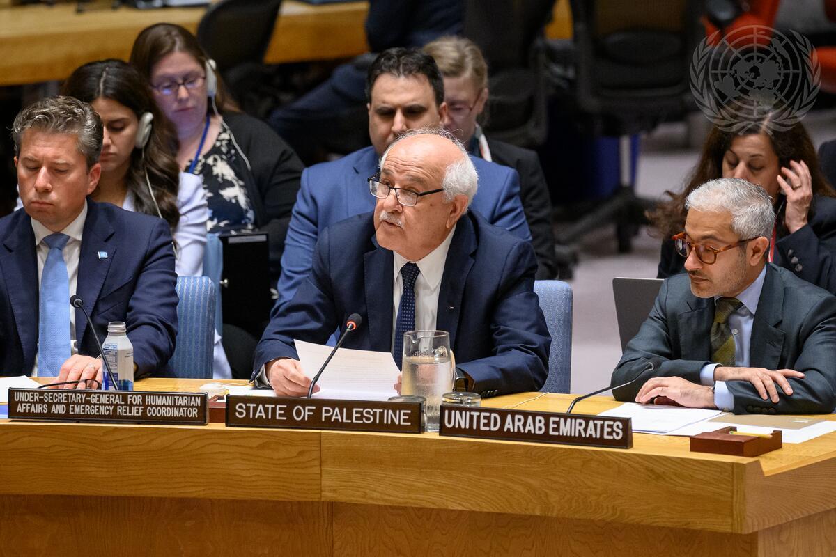 Riyad Mansour, Permanent Observer of the State of Palestine to the United Nations, addresses the Security Council meeting on the situation in the Middle East, including the Palestinian question.