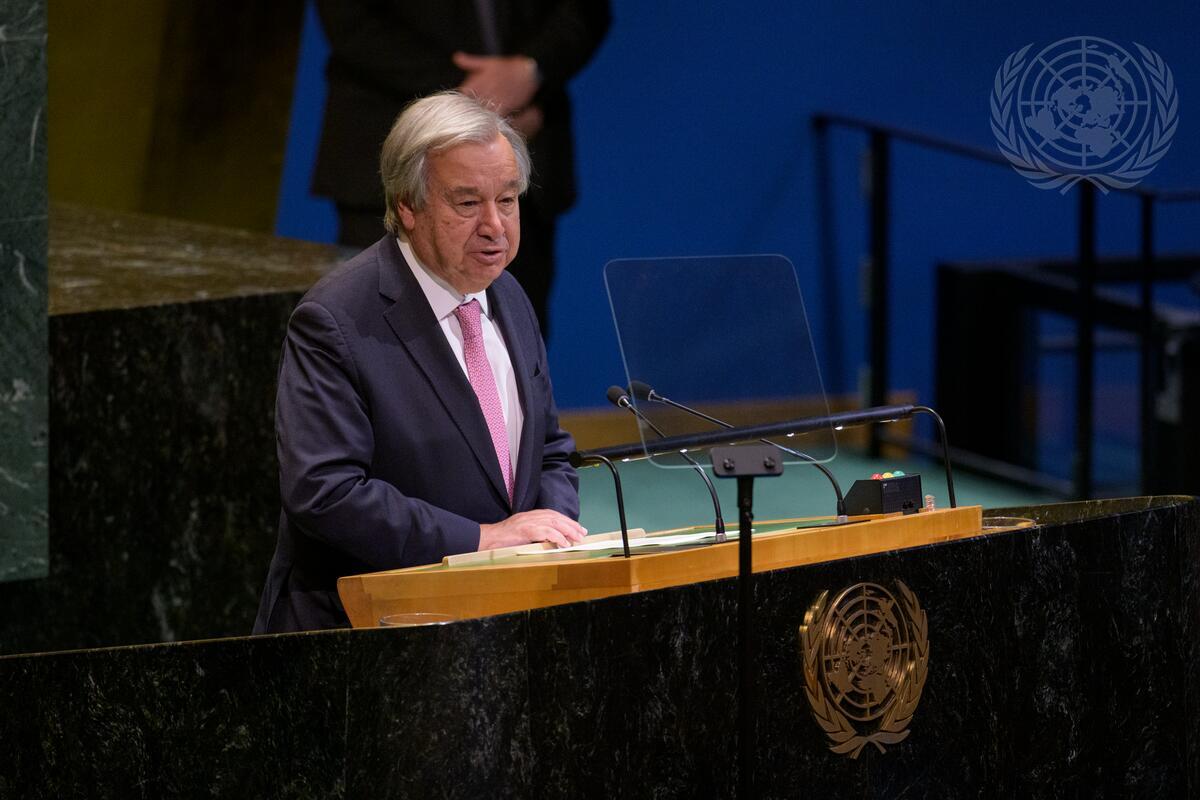Secretary-General António Guterres addresses the 1st plenary meeting of the eightieth session of the United Nations General Assembly.