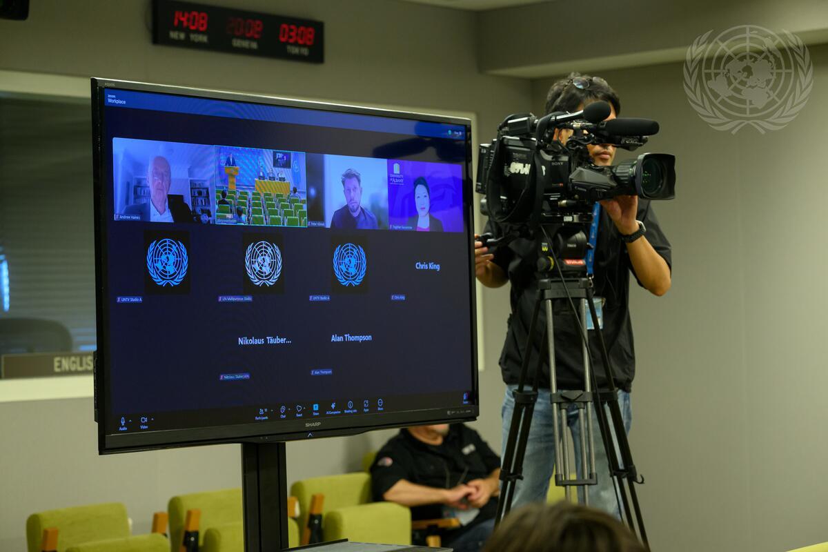 A view of the press briefing on the first meeting of the Independent Scientific Panel on the Effects of Nuclear War, established pursuant to resolution 79/238.