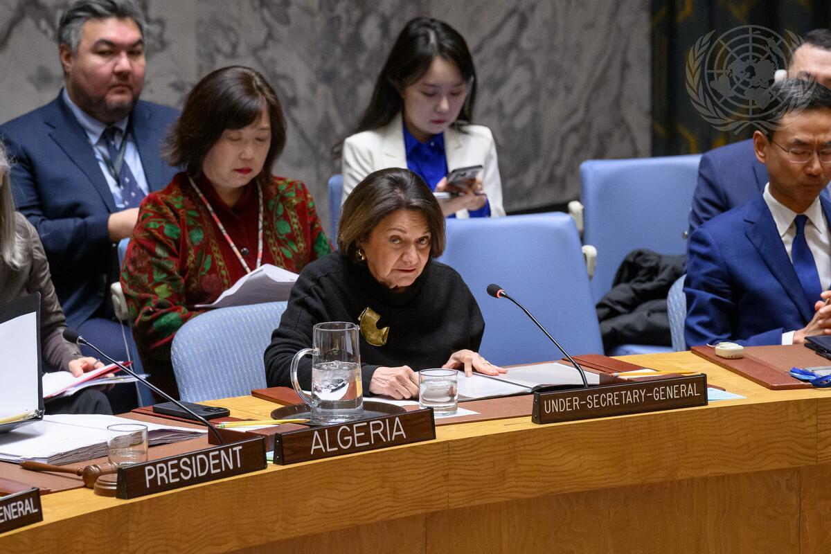 Rosemary DiCarlo, Under-Secretary-General for Political and Peacebuilding Affairs, briefs the Security Council meeting on maintenance of peace and security of Ukraine.