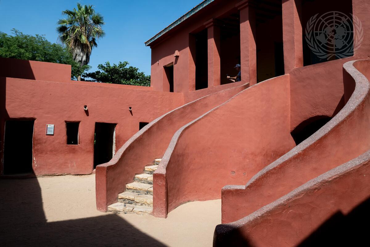 The stairs in the courtyard of the House of Slaves, a late 18th century building used as a holding centre for enslaved people before their forced embarkation for the Americas.