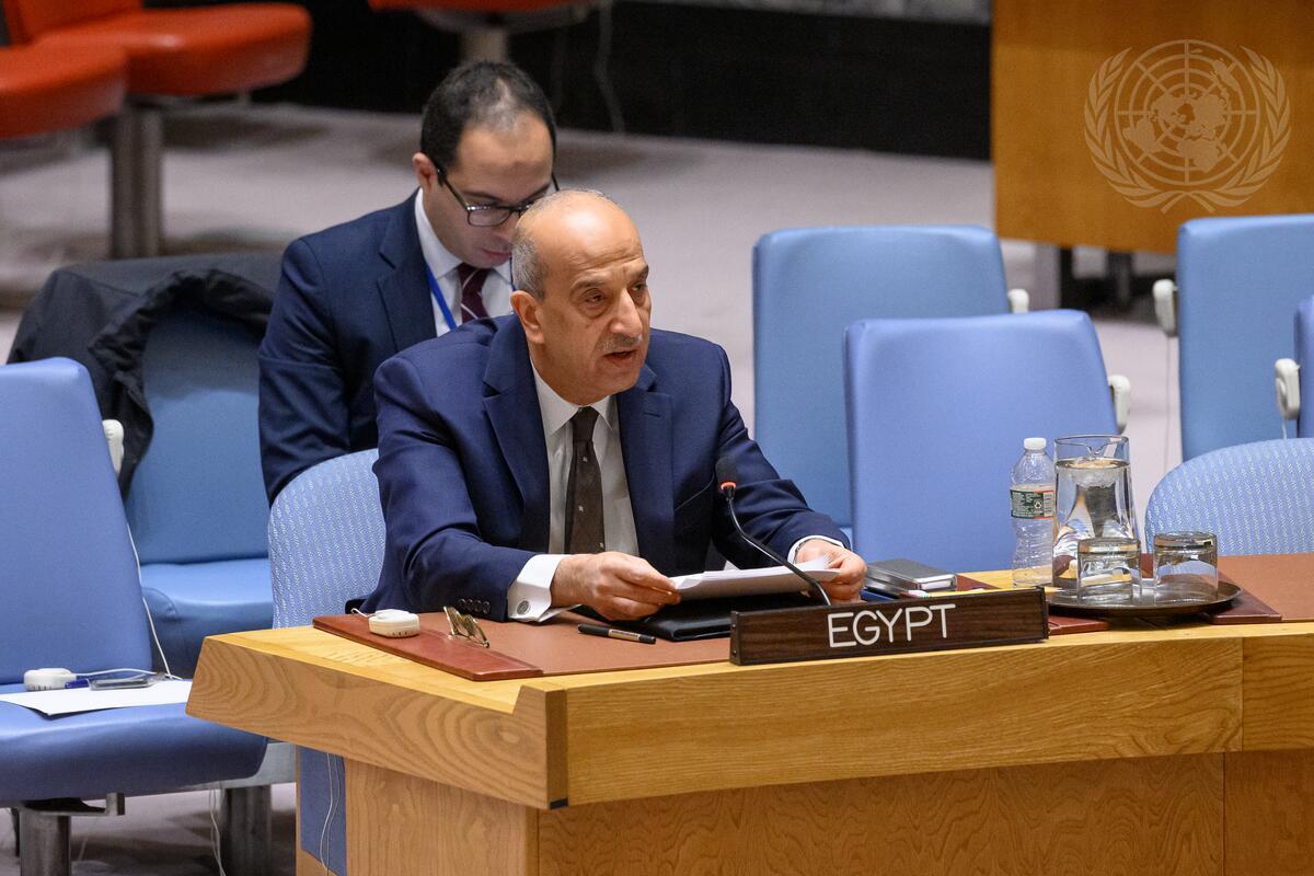 Osama Mahmoud Abdelkhalek Mahmoud, Permanent Representative of Egypt to the United Nations, addresses the Security Council meeting on cooperation between the United Nations and regional and subregional organizations in maintaining international peace and security, with a focus on Cooperation between the UN and League of Arab States.