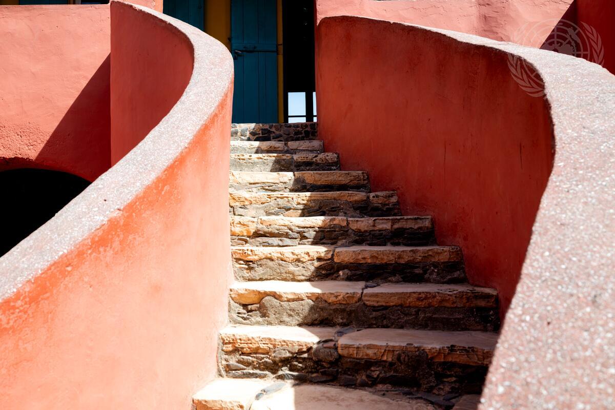 The stairs in the courtyard of the House of Slaves, a late 18th century building used as a holding centre for enslaved people before their forced embarkation for the Americas.