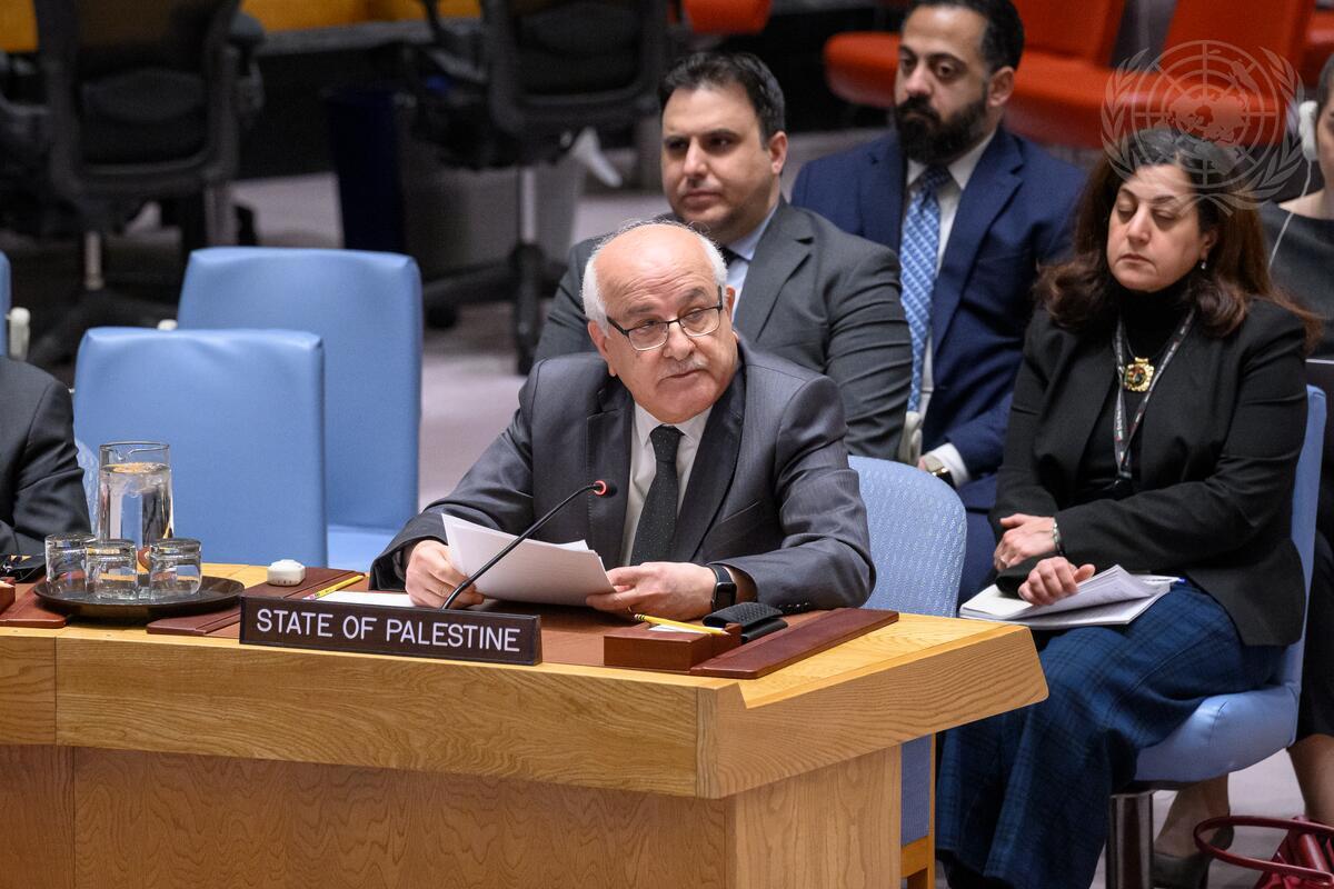 Riyad Mansour, Permanent Observer of the State of Palestine to the United Nations, addresses the Security Council meeting on the situation in the Middle East, including the Palestinian question.
