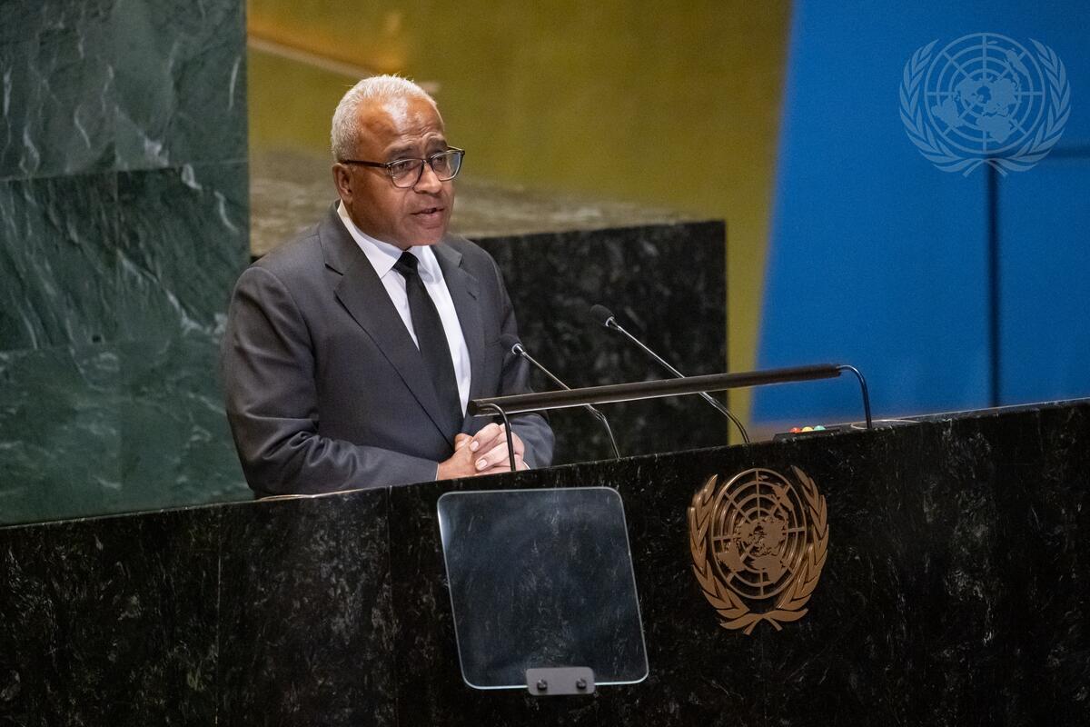 Filipo Tarakinikini, Permanent Representative of the Republic of Fiji to the United Nations, addresses, on behalf of the Asia-Pacific States, the commemorative meeting of the General Assembly to Mark the International Day of Remembrance of the Victims of Slavery and the Transatlantic Slave Trade.