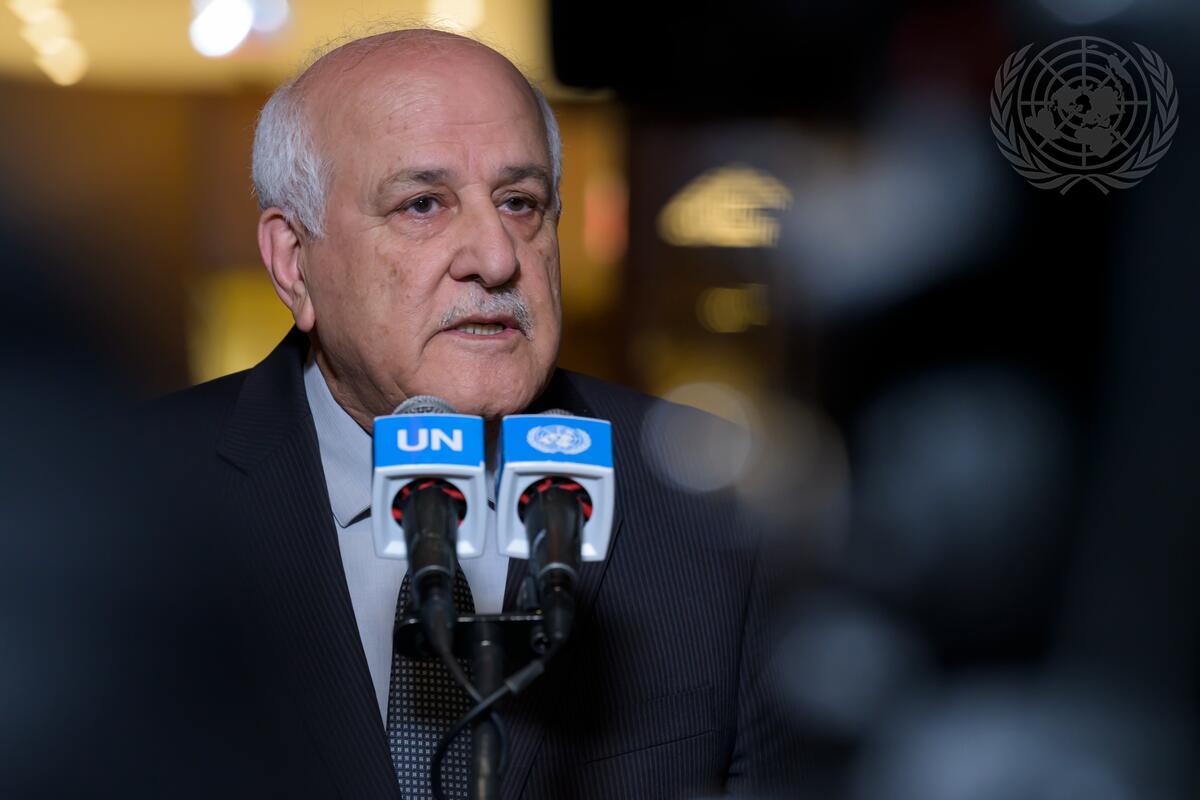 Riyad Mansour, Permanent Observer of the State of Palestine to the United Nations, briefs reporters after the 2025 opening session of the Committee on the Exercise of the Inalienable Rights of the Palestinian People.