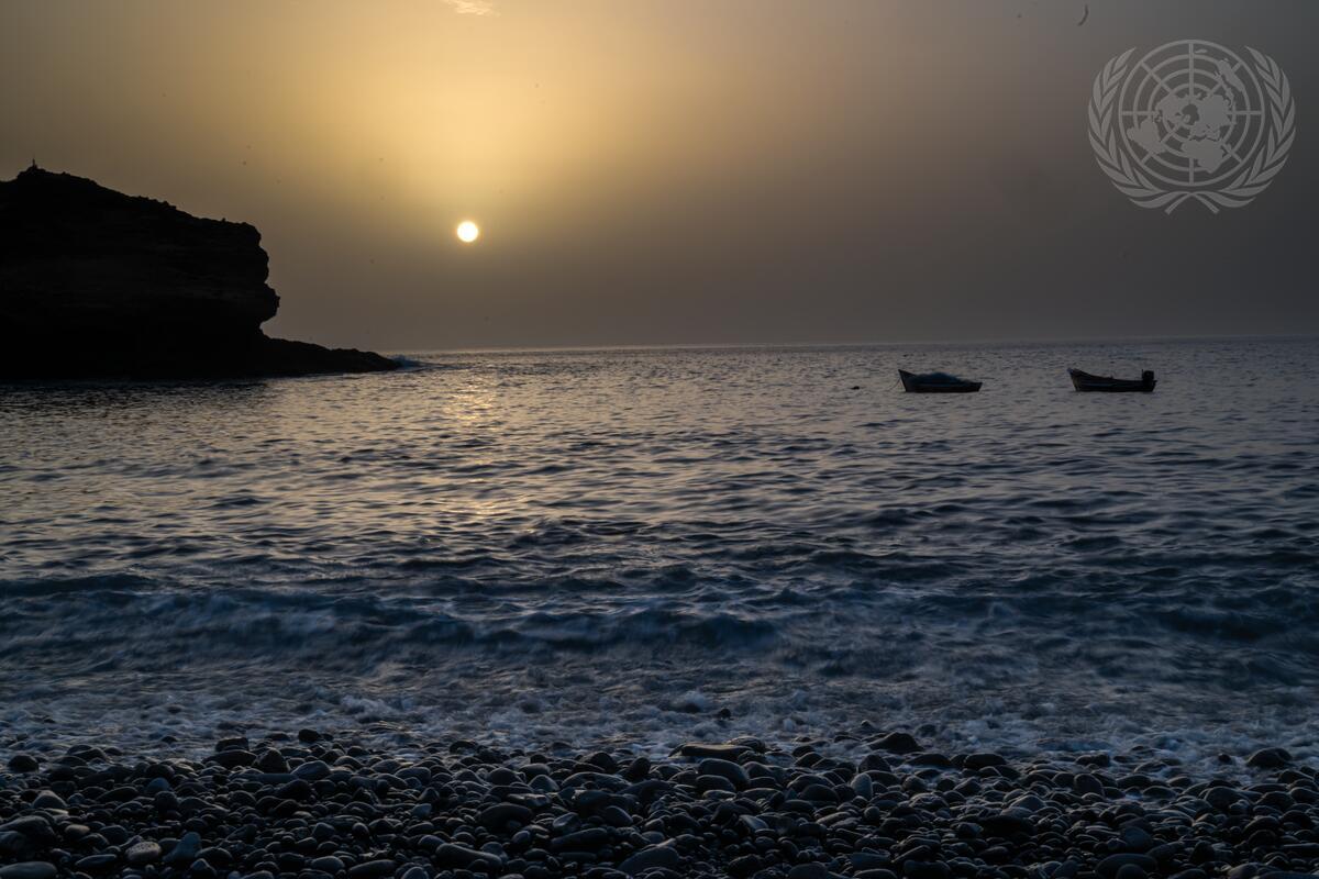 The sun setting in a hazy sky in Rincao, Cabo Verde.