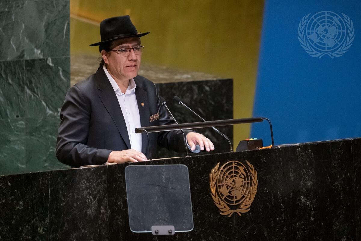 Diego Pary Rodríguez, Permanent Representative of Bolivia to the United Nations and Chair of the Group of Landlocked Developing Countries, addresses the 57th plenary meeting of the General Assembly on the Programme of Action for Landlocked Developing Countries for the Decade 2024–2034.