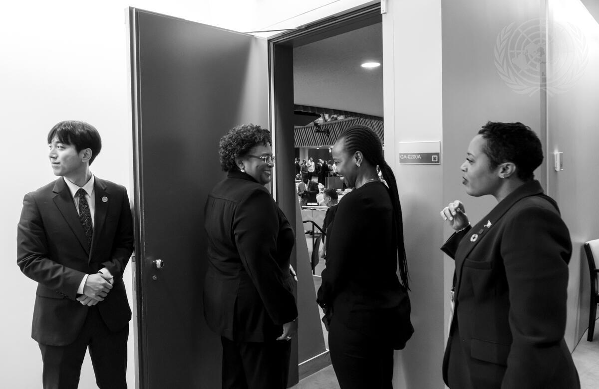 Mia Amor Mottley (centre left), Prime Minister, Minister for National Security and the Public Service, and Minister for Finance, Economic Affairs and Investment of Barbados, on her way into the General Assembly Hall to address the general debate of the General Assembly’s seventy-ninth session.