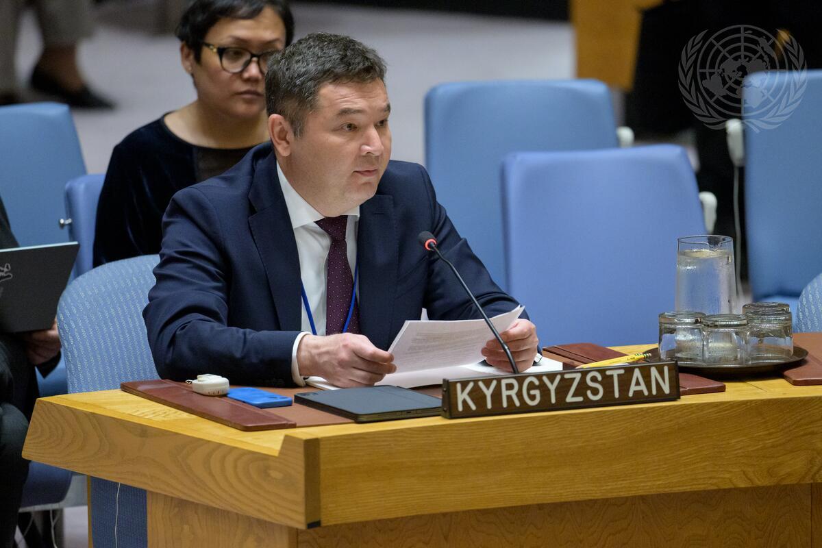 Bakyt Sydykov, Minister for Economy and Commerce of Kyrgyzstan, addresses the Security Council meeting on promoting international peace and security through multilateralism and peaceful settlement of disputes under the agenda item maintenance of international peace and security.