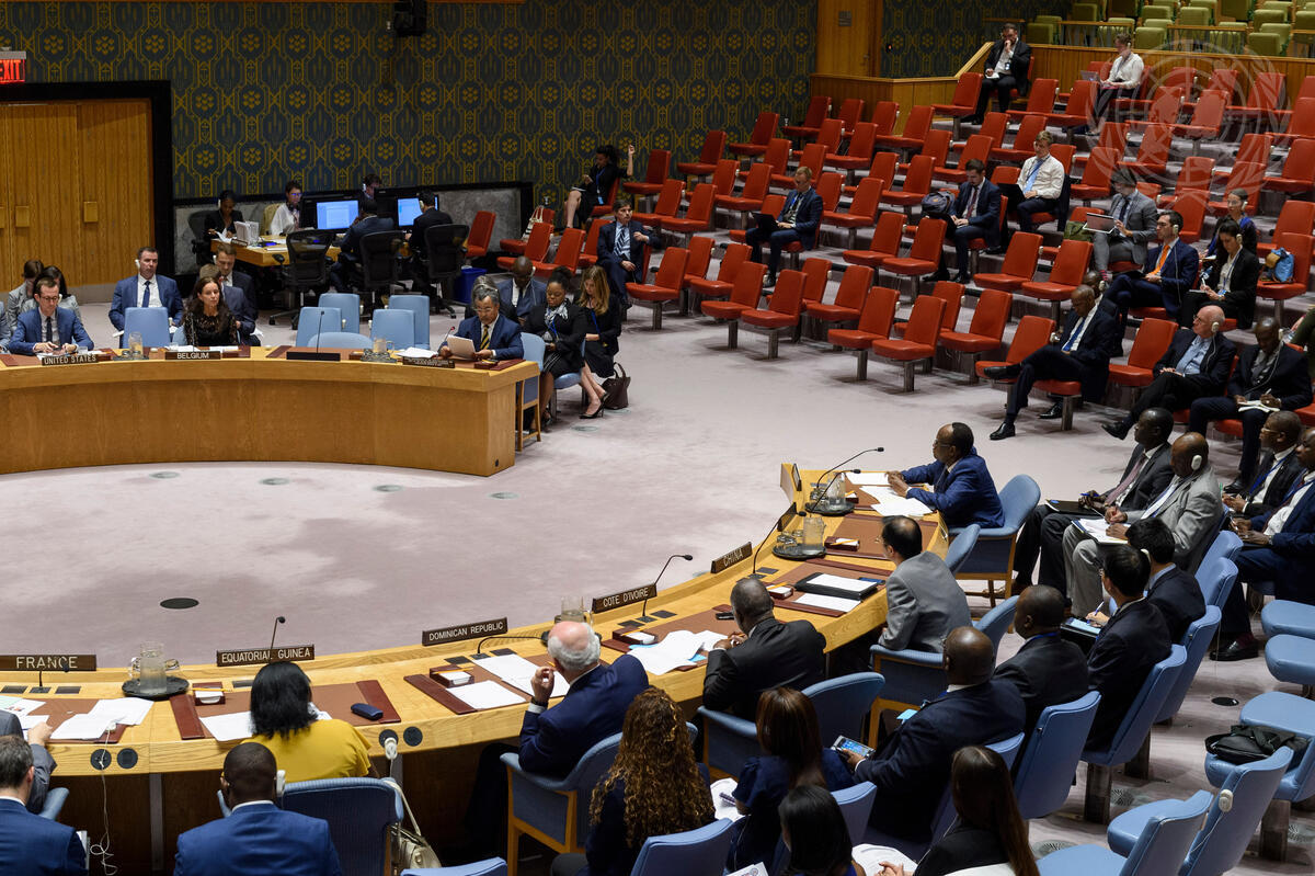 Wide view as Mahamat Saleh Annadif, Special Representative of the Secretary-General and Head of the United Nations Multidimensional Integrated Stabilization Mission in Mali (MINUSMA), briefs the Security Council meeting on the situation in Mali.