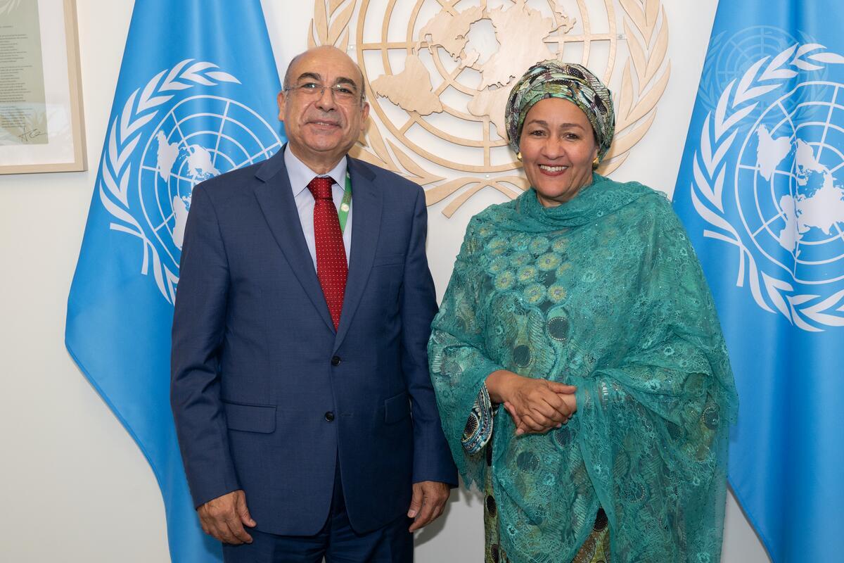 Deputy Secretary-General Amina Mohammed (right) meets with Mohamed Edrees, Permanent Observer of the African Union.