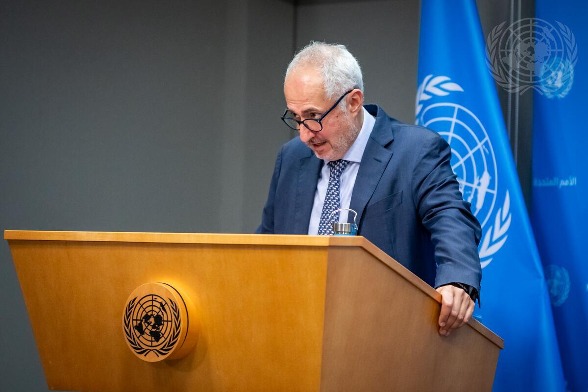 Stéphane Dujarric, Spokesperson for the Secretary-General, briefs reporters during the daily noon briefing at UN Headquarters.