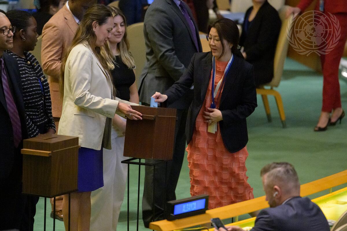 A delegate casts her ballot during the 75th plenary meeting of the General Assembly. The Assembly held election of members of the Economic and Social Council.