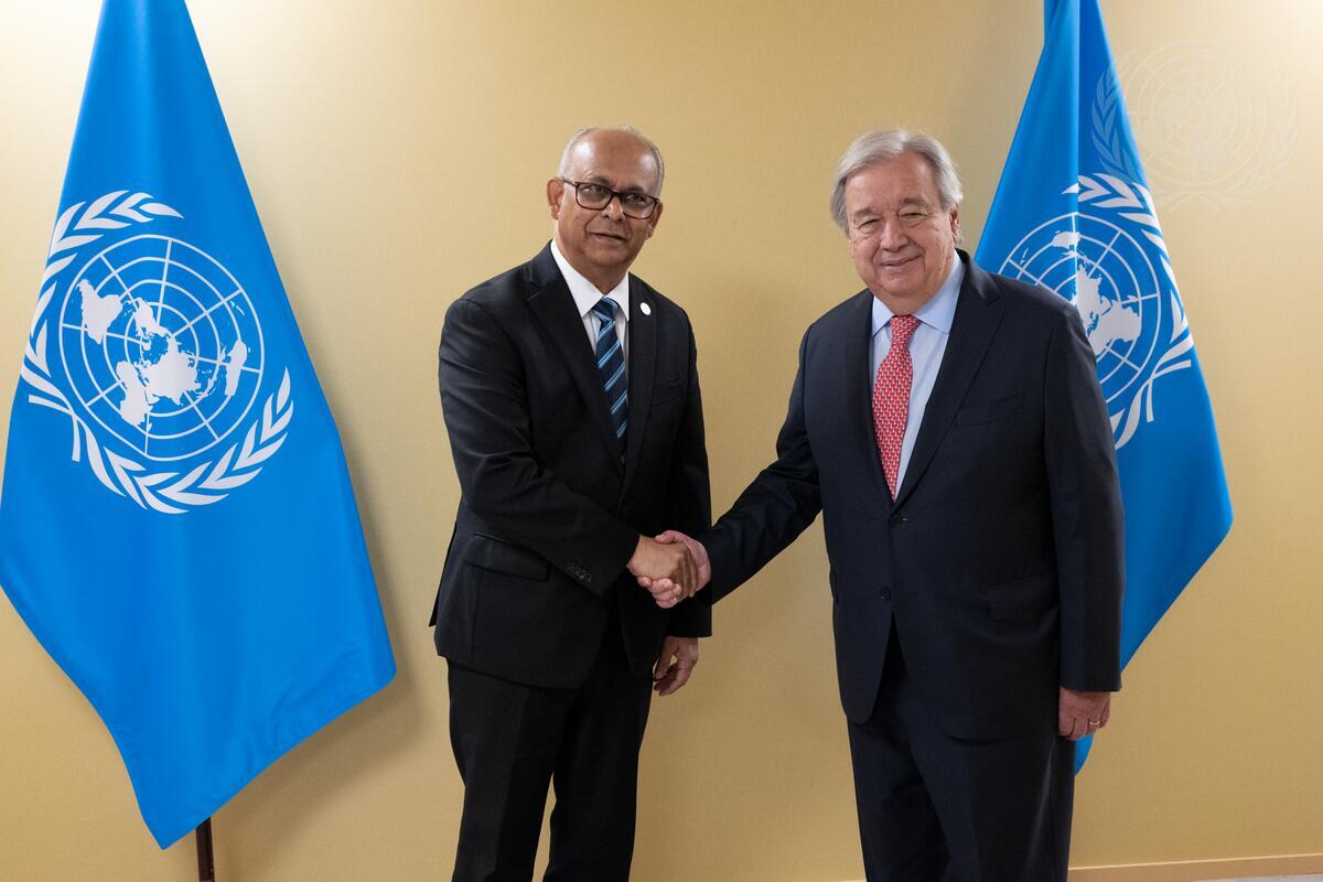 Secretary-General António Guterres (right) meets with Albert Ramdin, Secretary General of the Organization of American States (OAS) and Minister of Foreign Affairs and International Business and International Cooperation for the Republic of Suriname.
