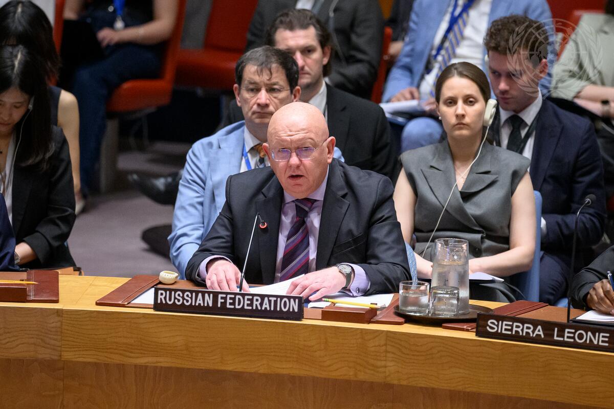 Vassily Nebenzia, Permanent Representative of the Russian Federation to the United Nations, addresses the Security Council meeting on threats to international peace and security.