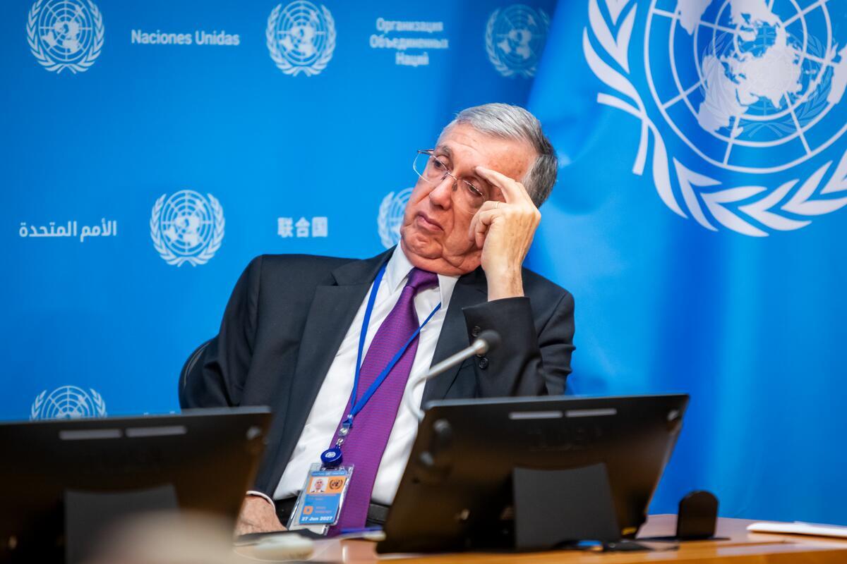 Sérgio França Danese, Permanent Representative of Brazil to the United Nations, listens as Luiz Inácio Lula da Silva, President of the Federative Republic of Brazil, briefs the press during the High-level Week of the 80th General Assembly.