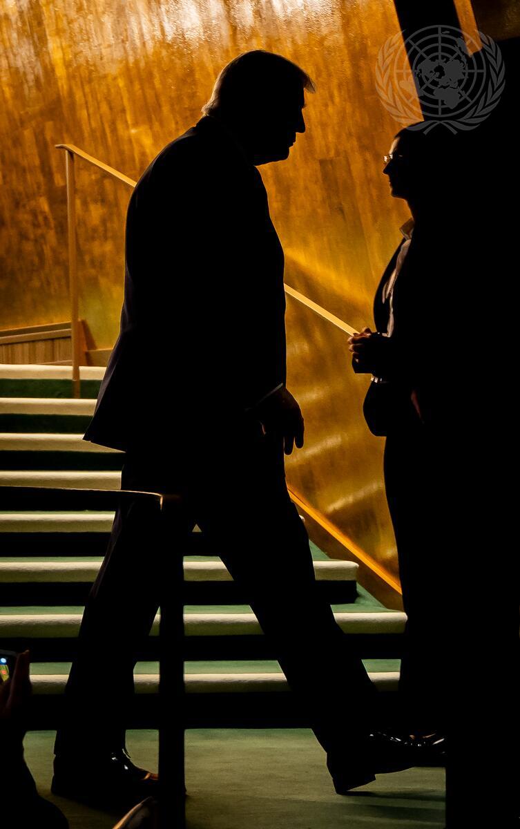 Donald Trump, President of the United States of America, walks off the stage after addressing the general debate of the General Assembly’s eightieth session.