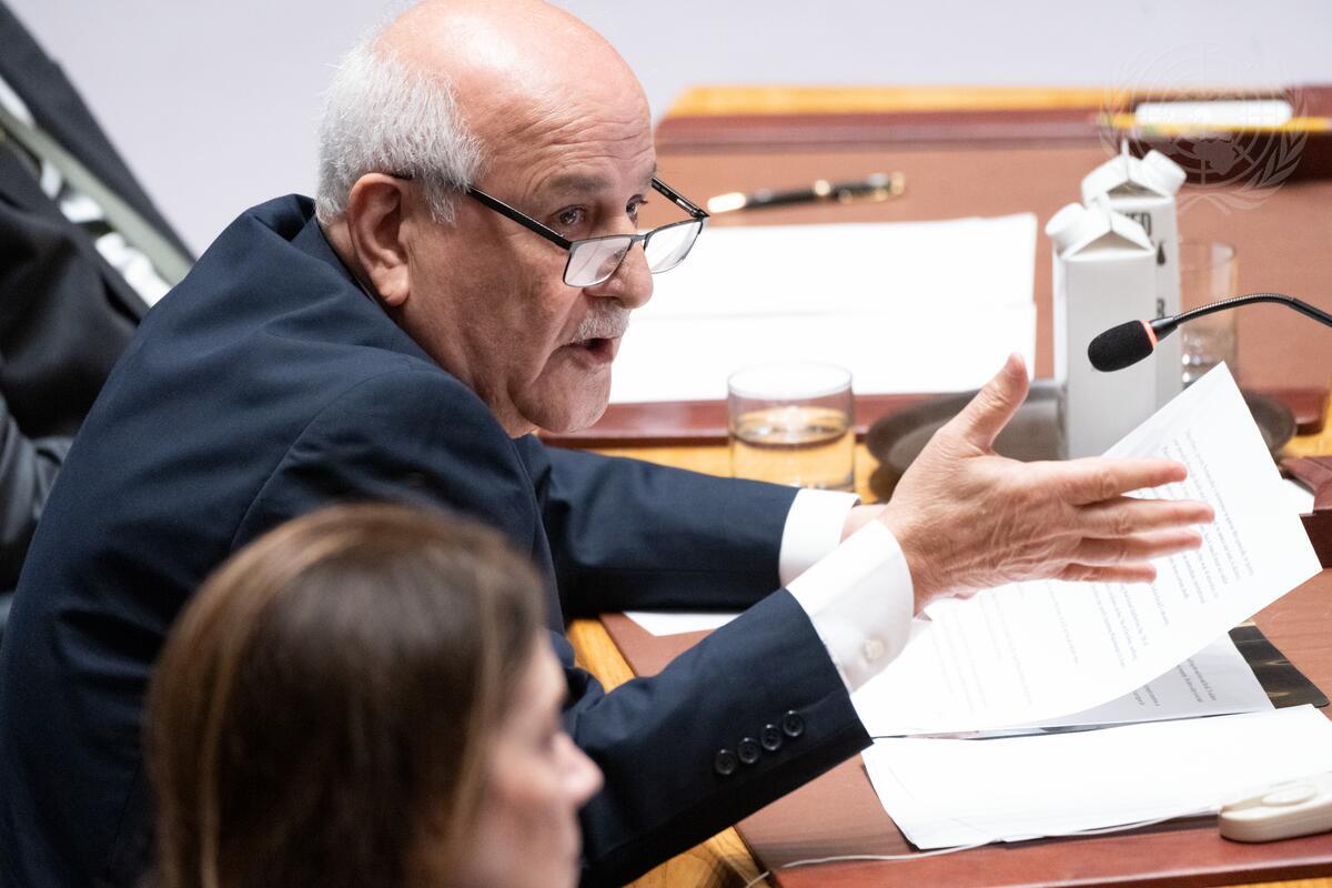 Riyad Mansour, Permanent Observer of the State of Palestine to the United Nations, addresses the Security Council meeting on the situation in the Middle East, including the Palestinian question.