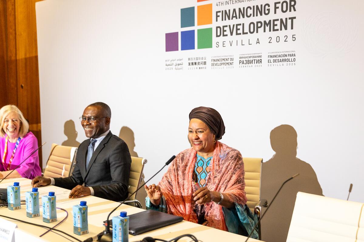 Deputy Secretary-General Amina Mohammed (right) attends the event “Driving Transformational Change in Financing Essential Public Services: The Case of Education” during the 4th International Conference on Financing for Development (FfD4).