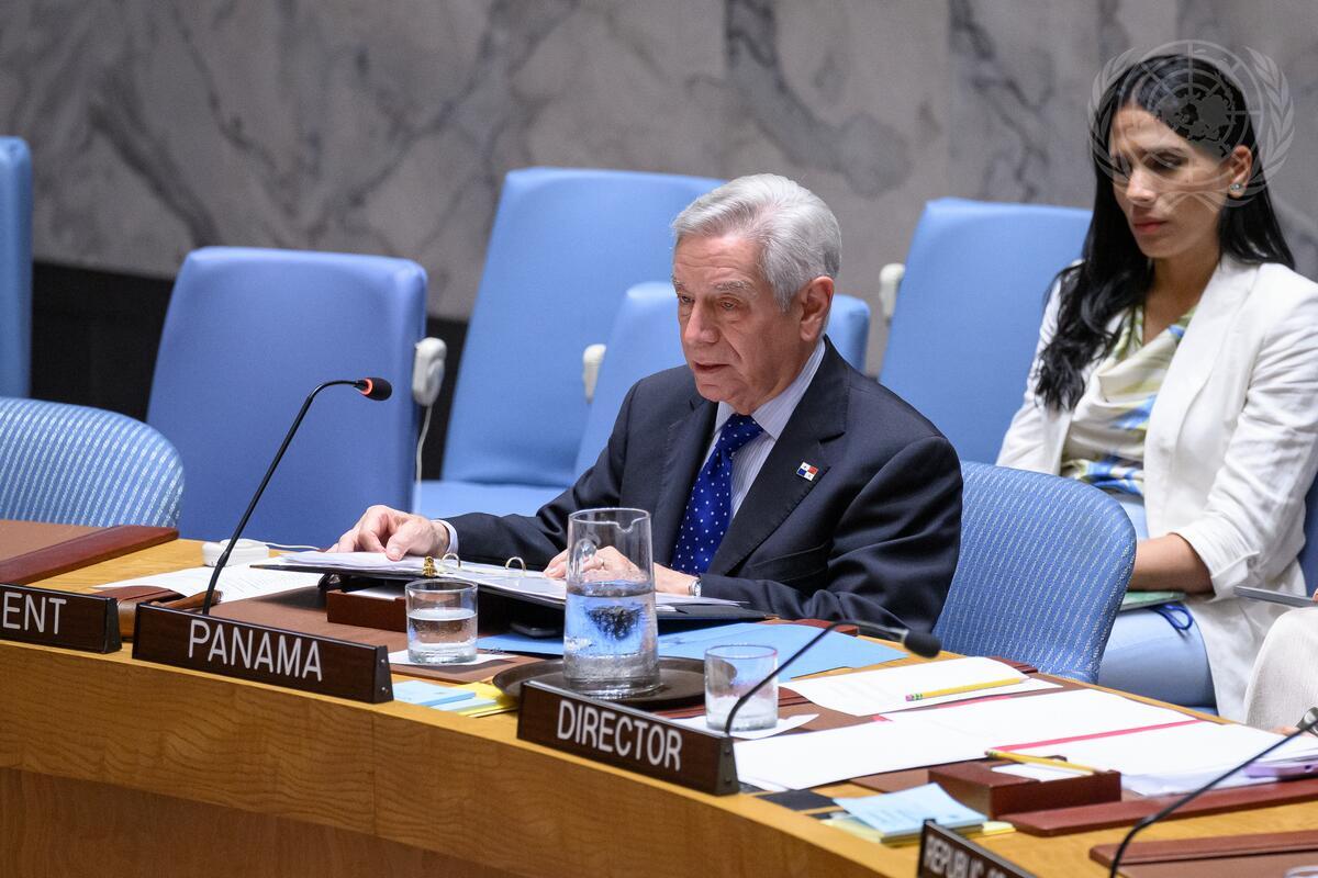 Eloy Alfaro de Alba, Permanent Representative of Panama to the United Nations and President of the Security Council for the Month of August, chairs the Security Council meeting on the situation in Libya.