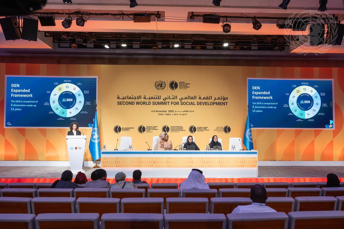 A view of a press conference on Digital Economy and Prosperity, DEN, a data drive solution for advancing social resilience held during the Second World Summit for Social Development