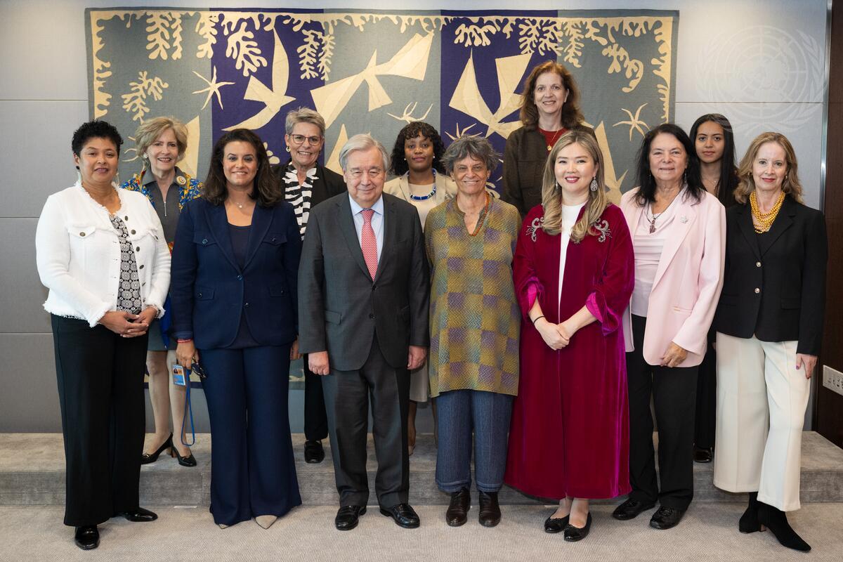 Secretary-General António Guterres (third from left) meets with the Executive Board of Women's International Forum.