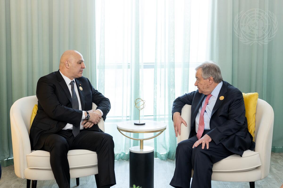 Secretary-General António Guterres (right) meets with Joseph Aoun, President of the Republic of Lebanon, on the sidelines of the Extraordinary Arab Summit on the situation in the Middle East and on Gaza reconstruction held in Cairo, Egypt.
