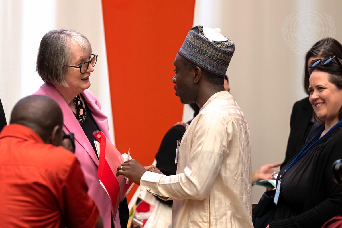 Chernor Bah (centre), Minister of Information & Civic Education of Sierra Leone, speaks with Harriet Harman (left), Special Envoy for Women and Girls for the United Kingdom, during the event titled “POWER4Girls: invest in girls, transform the world” on the occasion of the sixty-ninth session of the Commission on the Status of Women (CSW69/Beijing+30)