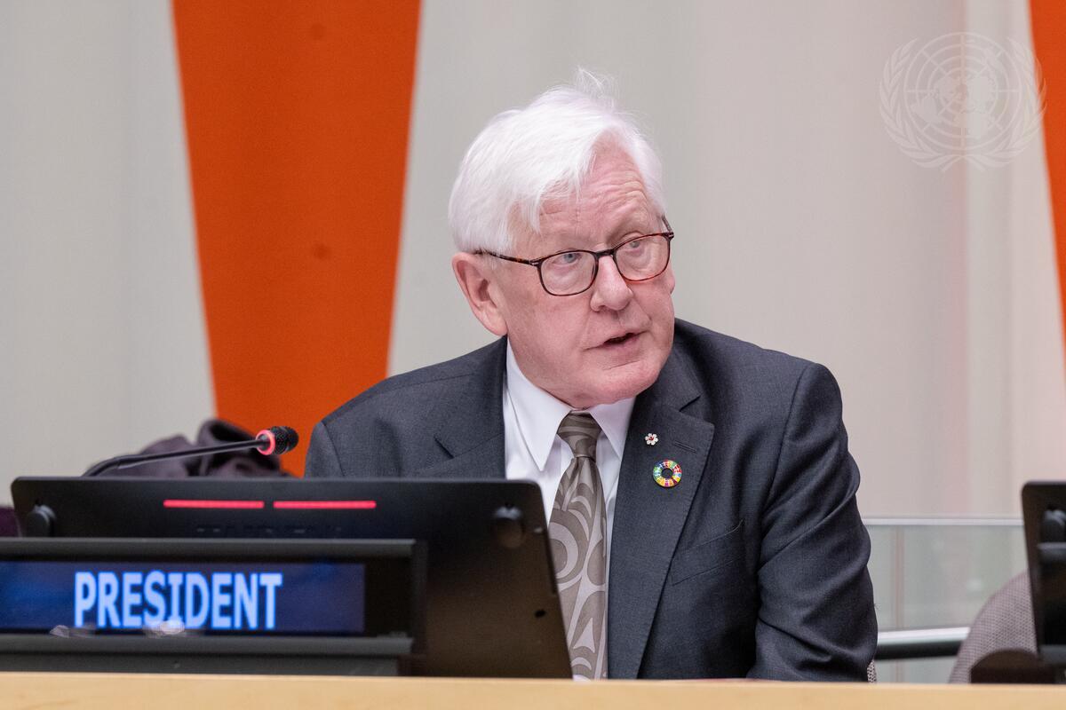 Robert Rae, President of the Economic and Social Council for 2025 and Permanent Representative of Canada to the United Nations, addresses the opening of the 2025 Development Cooperation Forum of the Economic and Social Council (ECOSOC). The theme of the forum is “Transforming international development cooperation: from global dialogue to action.”