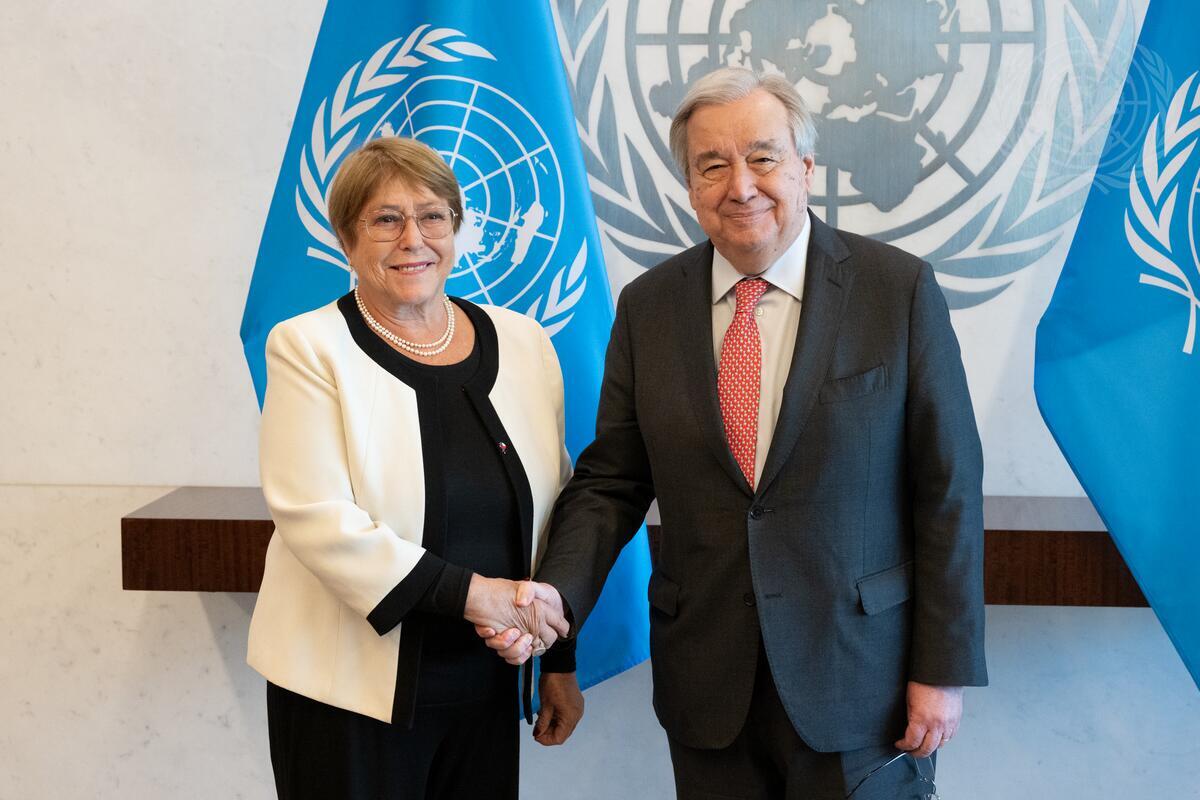 Secretary-General António Guterres (right) meets with Michelle Bachelet, Vice-President of the Club de Madrid.