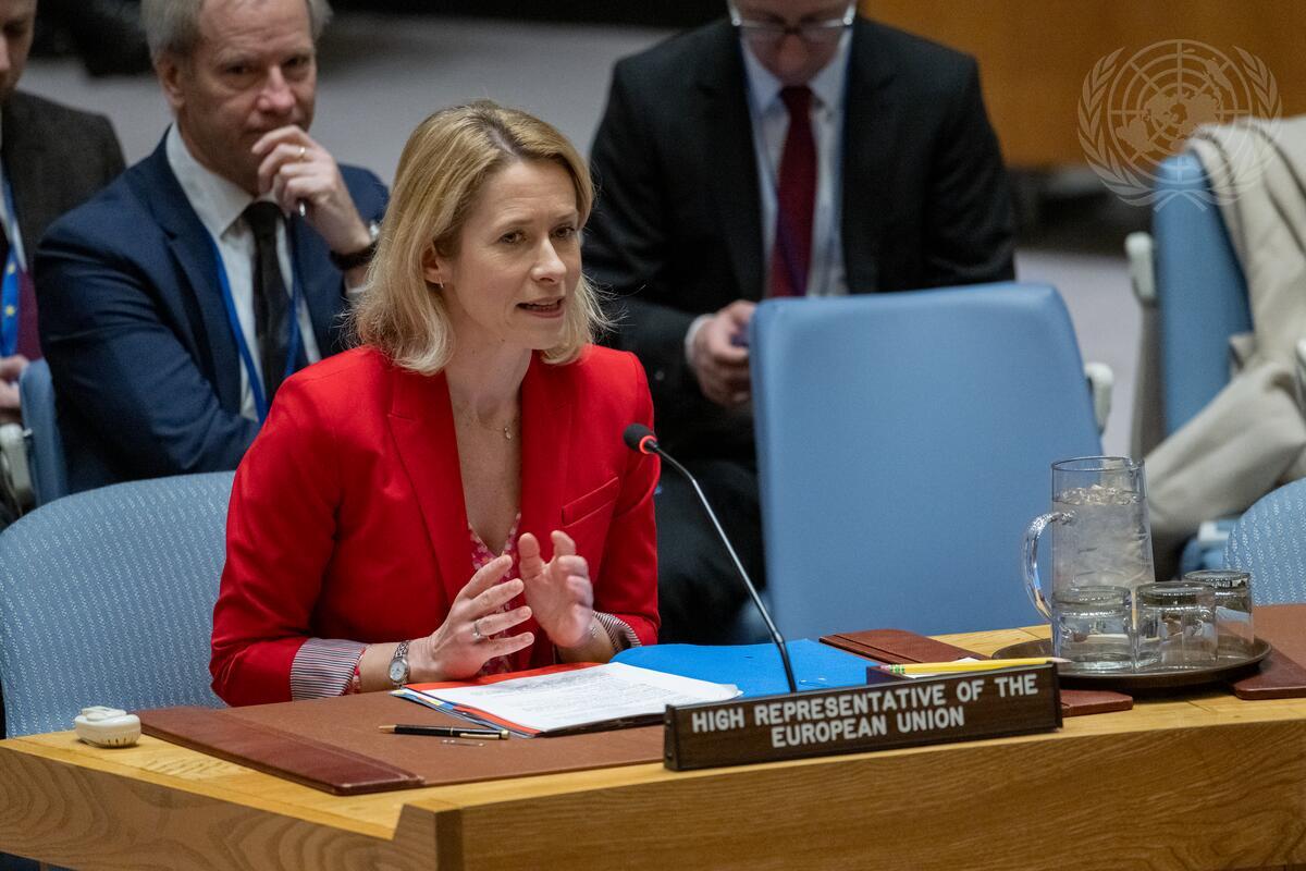 Kaja Kallas, High Representative of the European Union for Foreign Affairs and Security Policy, briefs the Security Council meeting on cooperation between the United Nations and regional and subregional organizations in maintaining international peace and security.