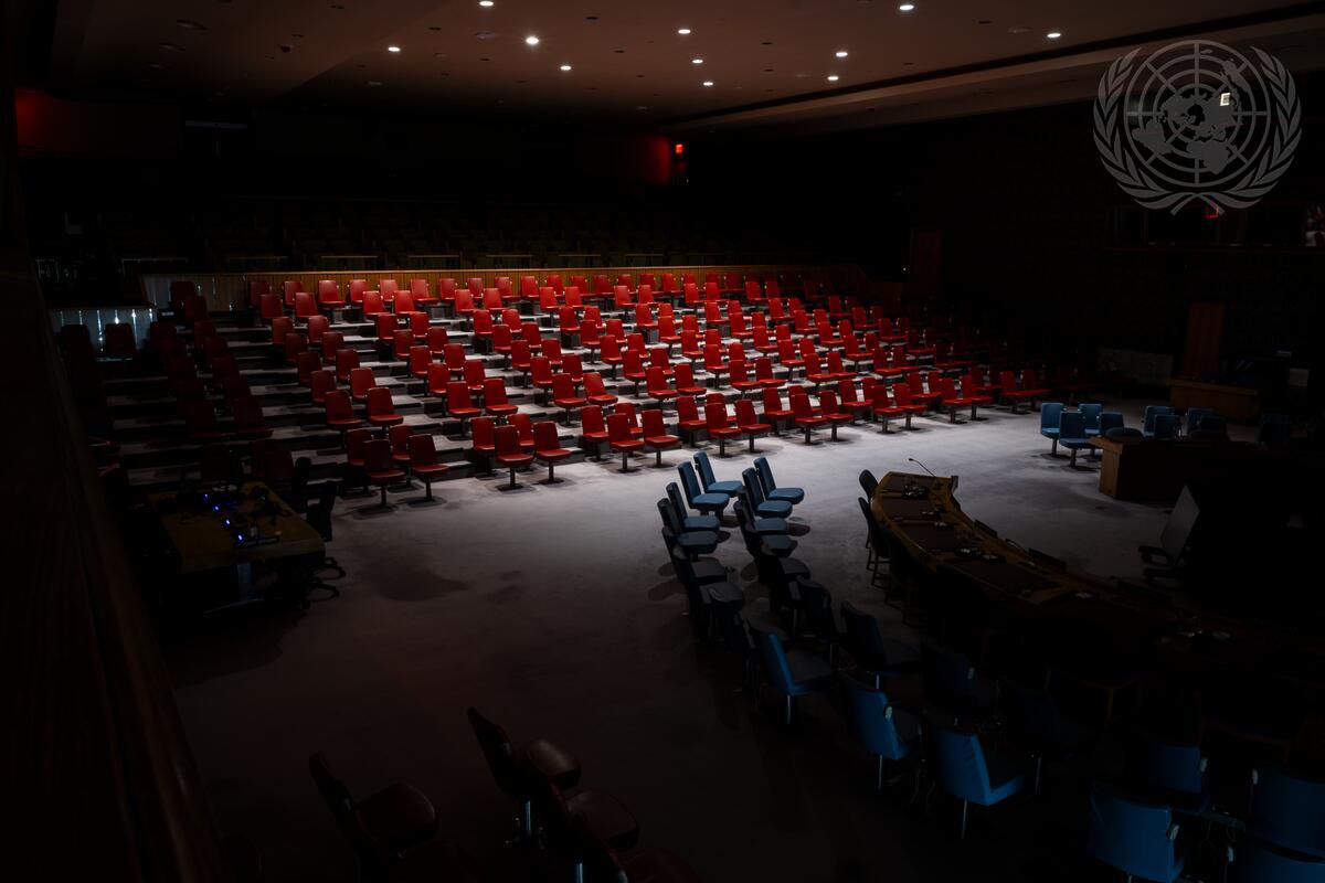 A view of the attendance gallery for the Security Council Chamber before the UN Security and Safety Service fully turns on the lights for a meeting on cooperation between the United Nations and regional and subregional organizations in maintaining international peace and security.