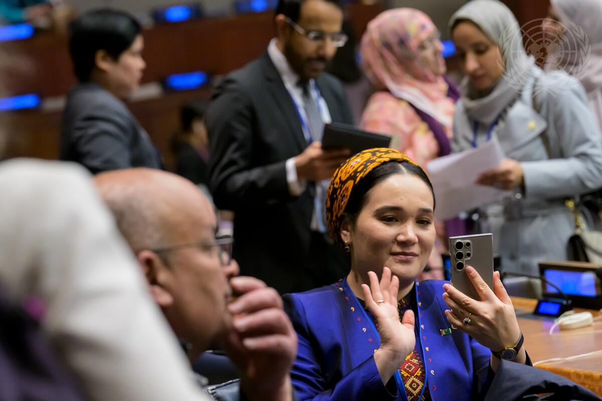 Participants attend the third plenary meeting of the sixty-ninth session of the Commission on the Status of Women (CSW69 / Beijing+30), high-level interactive dialogue with regional commissions.