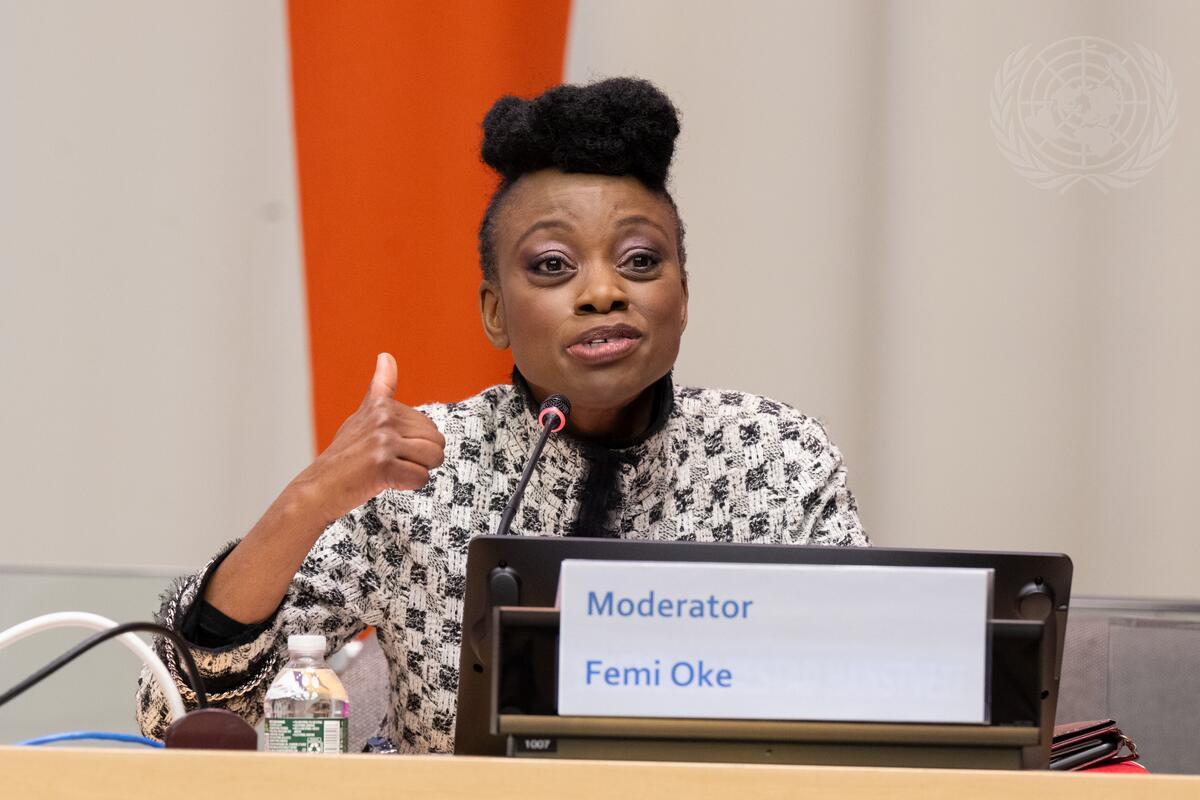 On screen are Femi Oke, Journalist and Broadcaster, moderates the event titled “Nordic ministers' panel: Join us in Pushing for Progress!” on the occasion of the sixty-ninth session of the Commission on the Status of Women (CSW69/Beijing+30).