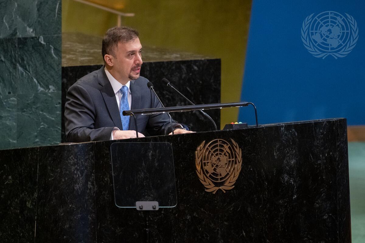 Naseer Faiq, Charge d'Affaires of the Permanent Mission of Afghanistan to the United Nations, addresses General Assembly meeting on the situation in Afghanistan.
