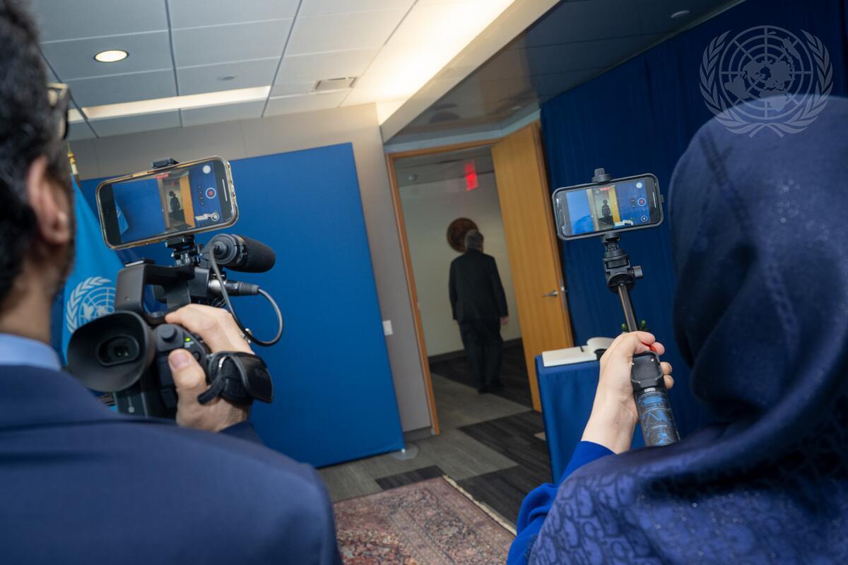 Secretary-General António Guterres (centre and on screens) meets with Seyed Abbas Araghchi, Minister for Foreign Affairs of the Islamic Republic of Iran (not pictured).
