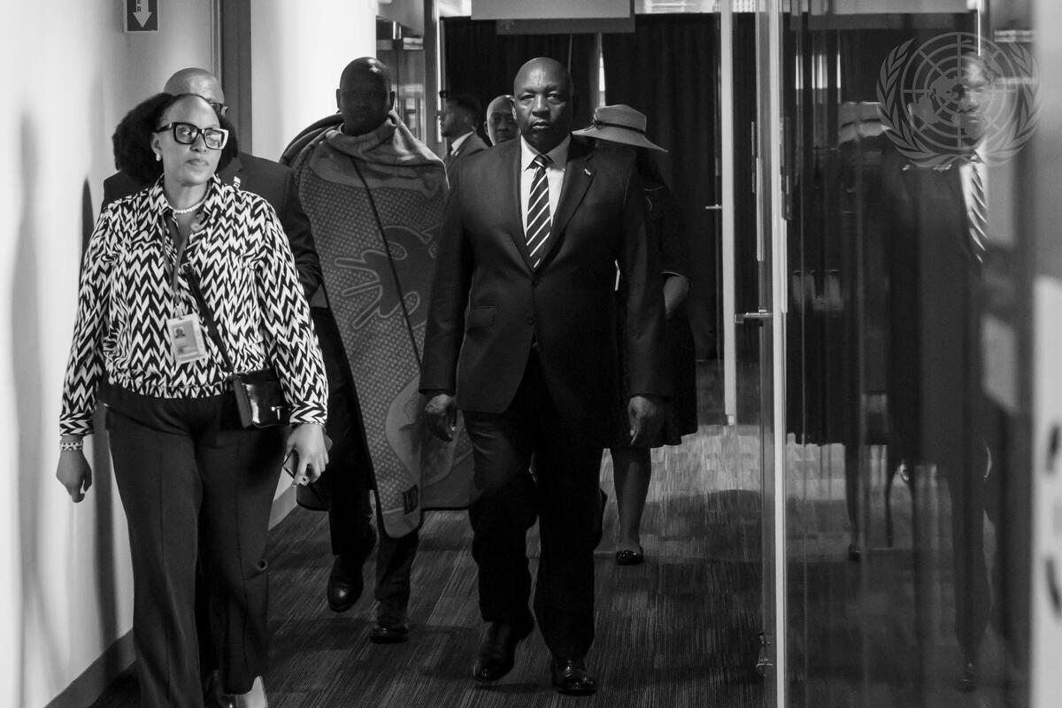 Ntsokoane Samuel Matekane (centre), Prime Minister and Head of Government, and Minister for Defence, National Security and Environment of the Kingdom of Lesotho, arrives to his meeting with Secretary-General António Guterres (not pictured).