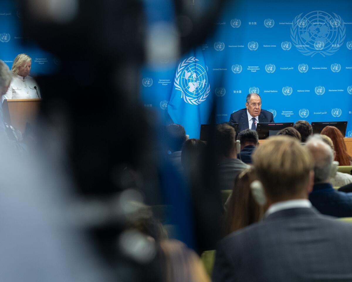 Foreign Minister of Russian Federation Briefs Press at UN Headquarters