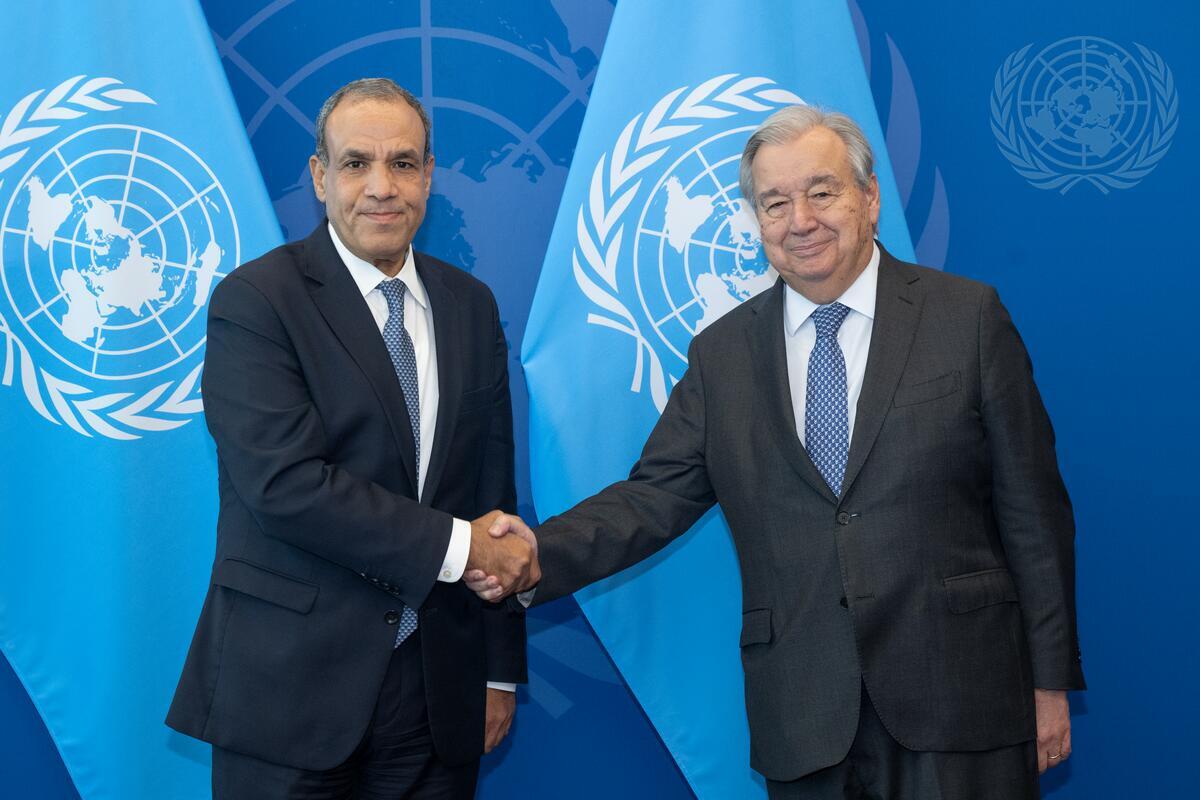 Secretary-General António Guterres (right) meets with Badr Ahmed Mohamed Abdelatty, Minister for Foreign Affairs, Emigration and Egyptian Expatriates of the Arab Republic of Egypt.