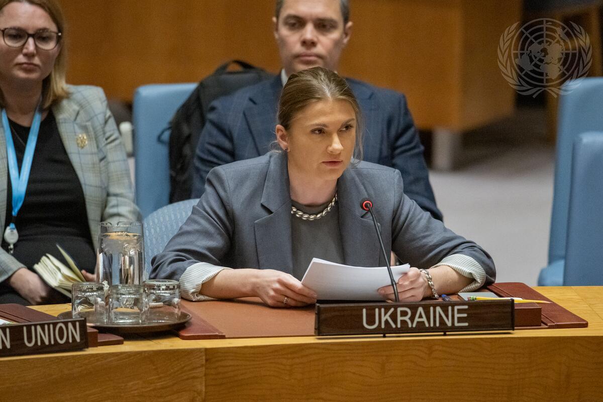 Khrystyna Hayovyshyn, Deputy Permanent Representative of Ukraine to the United Nations, addresses the Security Council meeting on maintenance of peace and security of Ukraine.